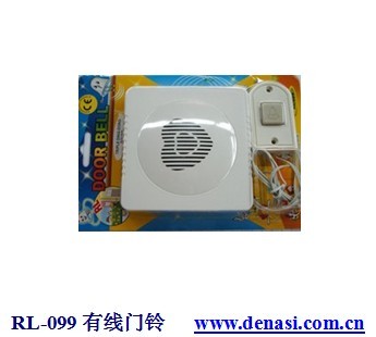 产品型号:RL-099 双音清晰电子金属叮咚声(两声)配1米连接线,能自行搭配市面上的门铃按纽使用,简单方便,可以自行加长连接线。 规格尺寸:9.5×9.5×3.5 (厘米) |